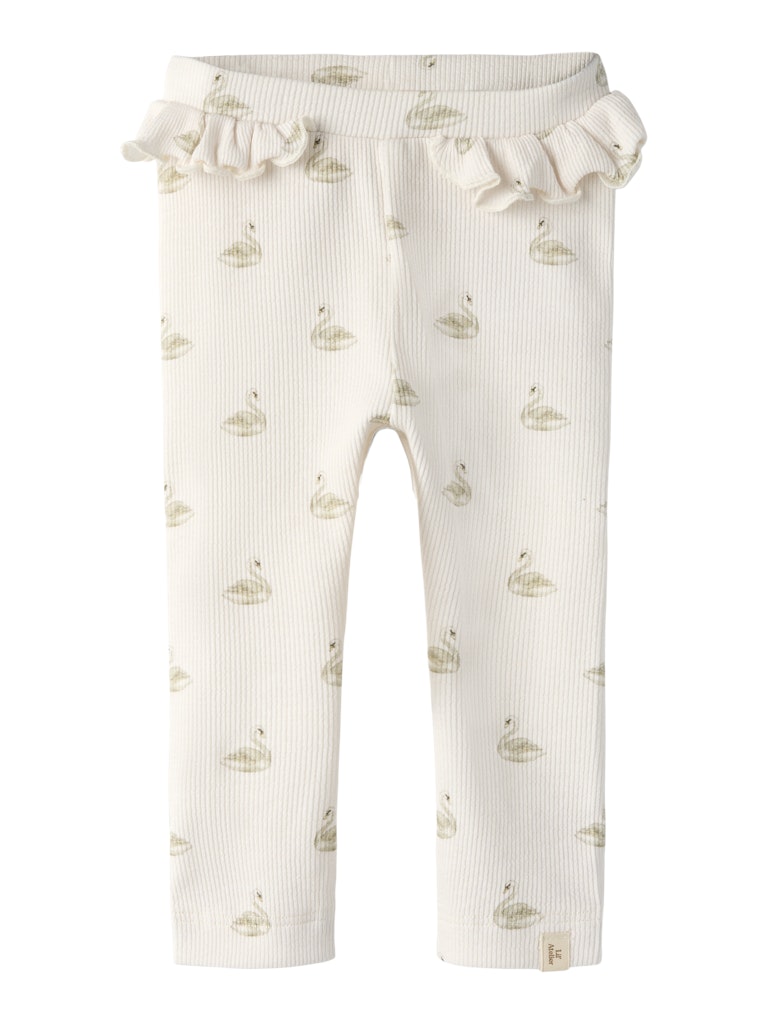 En skøn body fra Lil’ Atelier med et fint svaneprint og søde flæsedetaljer på skuldrene. Bodyen åbnes let med trykknapper på venstre skulder og mellem benene, hvilket gør den praktisk i hverdagen, især ved bleskift. Den bløde jersey kvalitet føles behagelig mod huden og giver barnet fuld bevægelighed.
