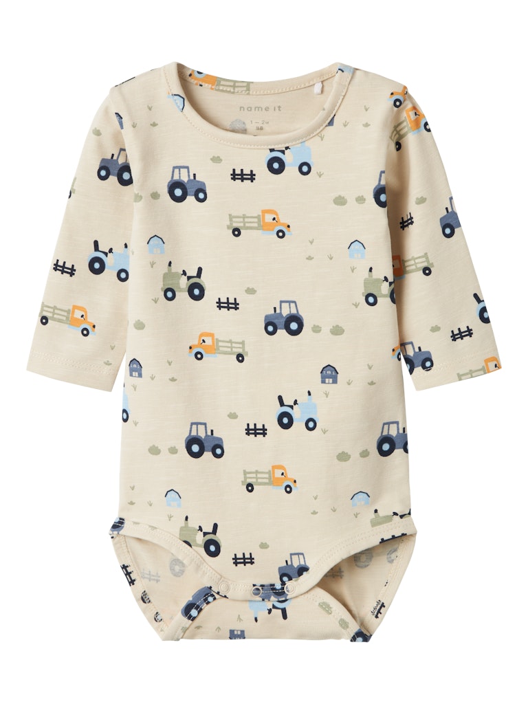 Søde bukser fra Name It i en blød og fleksibel jersey-kvalitet, der giver en dejlig komfort hele dagen. Bukserne har regular fit pasform og et legende print med små traktorer i afdæmpede farver. Den justerbare elastik i taljen og bindesnoren sikrer en perfekt pasform, mens de brede ribkanter ved benene giver et behageligt fit.