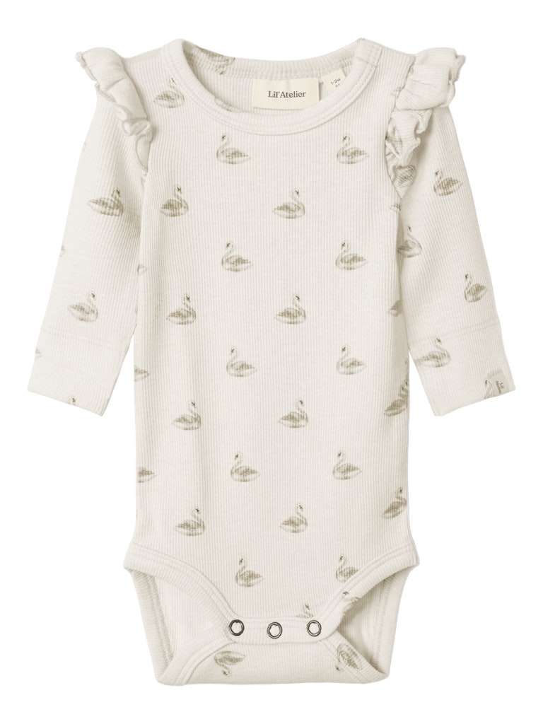 Disse råhvide leggings fra Lil’ Atelier er dekoreret med det sødeste print af små bamser og har en ribstruktur, der giver et flot og elastisk udtryk. Leggingsene har en klassisk pasform i blød og strækbar bomuldskvalitet, som sikrer god bevægelighed og komfort til dit barn.