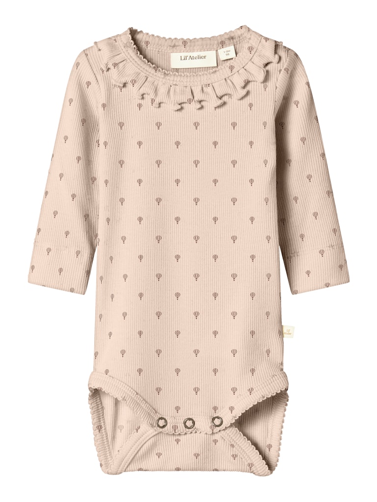 Lækre leggings til pigerne fra Lil’ Atelier i en sart rosa nuance med det fineste print af små luftballoner og en smuk ribstruktur. Leggingsene har en klassisk pasform i blød og strækbar bomuldskvalitet, som sikrer høj komfort og god bevægelighed til leg og hverdag. I taljen sidder en bred elastikkant, der giver en behagelig pasform, og buksebenene afsluttes med en sød flæsekant, som tilfører et feminint touch. Jersey er en let og strækbar kvalitet med en blød overflade, der føles rar mod huden.
